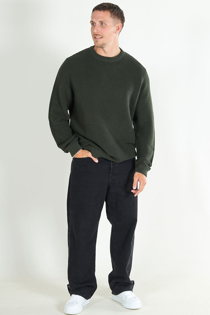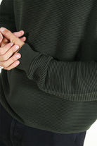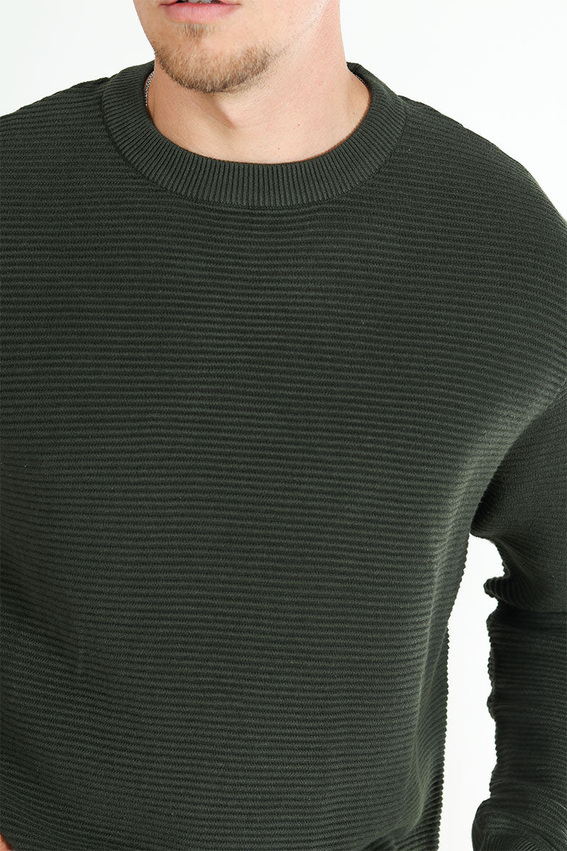 • Striktrøjen har ribkant i bunden, ærmerne, og i halsen.