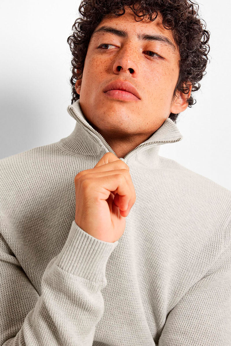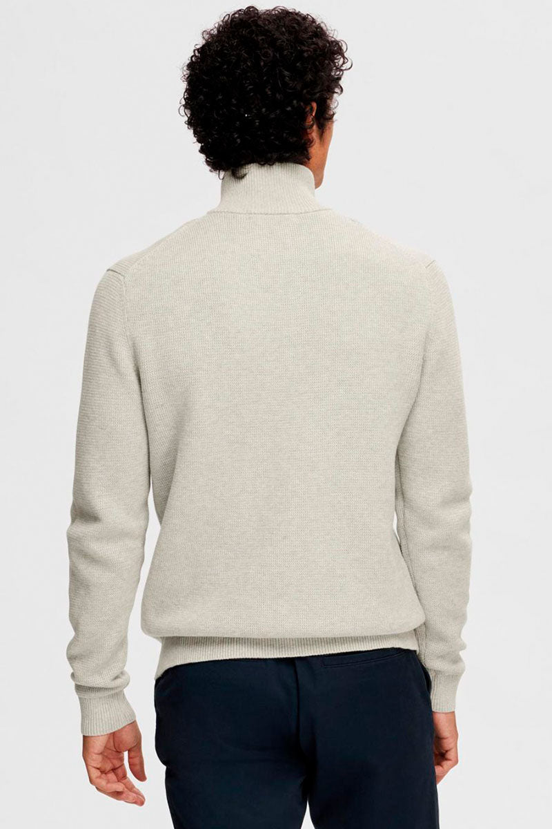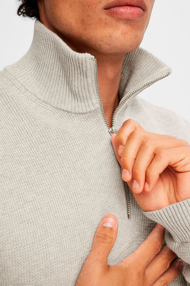 Dane LS Structure Knit Half Zip Light Grey Melange