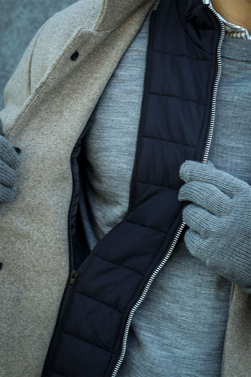 • Kvalitet: Hovedmateriale: 55% Polyester, 40% Uld, 5% Andre fibre; Foring: 100% Genanvendt polyester; Polstring: 100% Polyester fibre