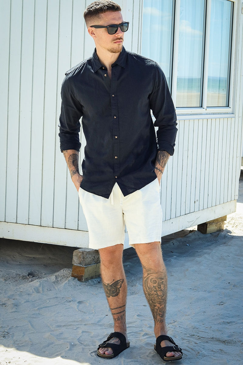 - Langærmet hørskjorte med klassisk krave.