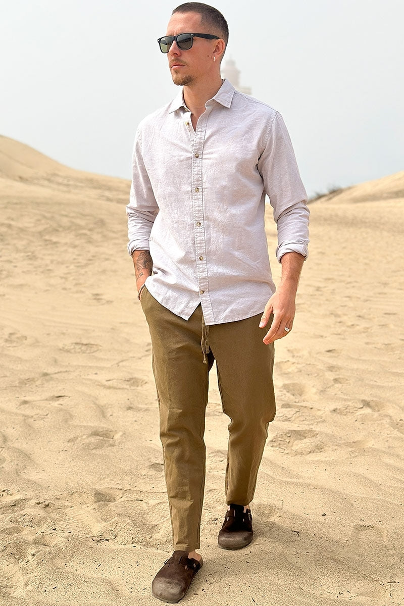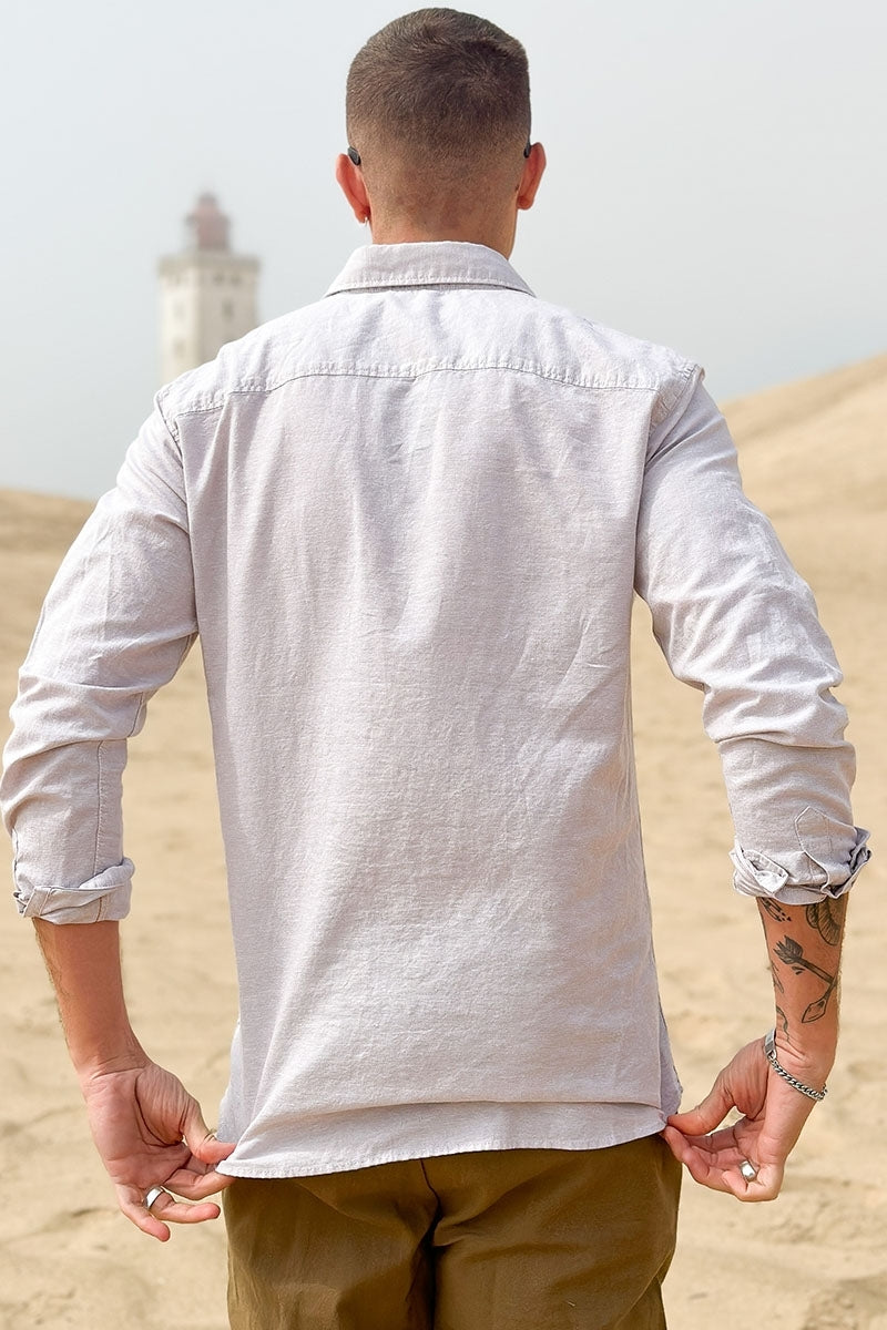 - Kvalitet: 63% Bomuld, 20% Genanvendt Bomuld og 17% Hør.