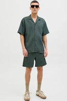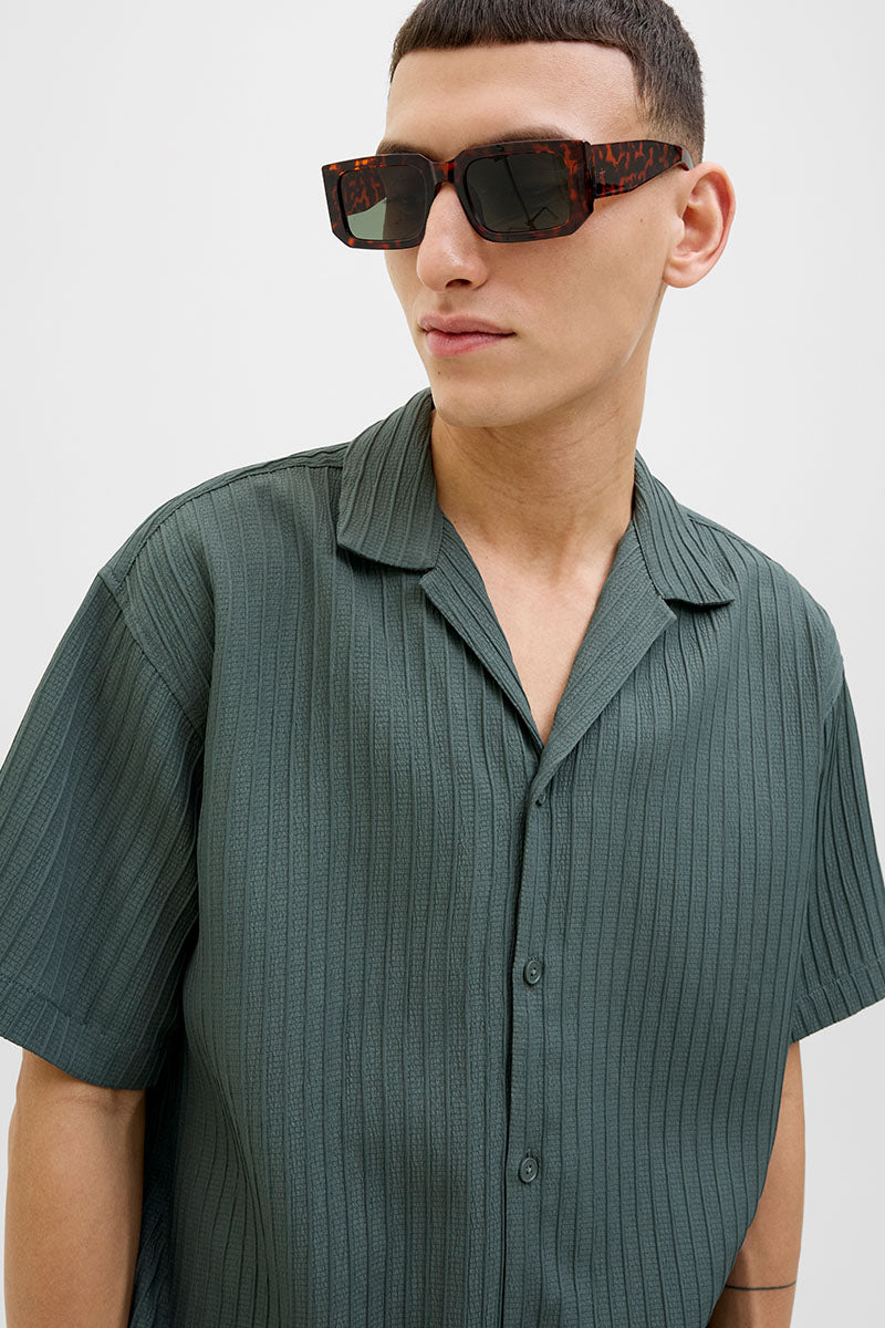 - Kortærmet skjorte med geometrisk mønster og løs pasform