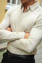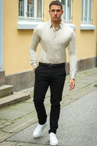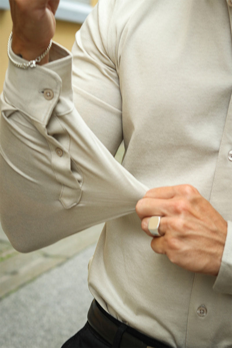 Comfort Shirt i farven Silver Lining er en stilfuld og lækker tætsiddende skjorte, der passer perfekt til enhver formel eller uformel anledning. Skjorten er designet med en klassisk krave og knaplukning, hvilket giver den et sofistikeret look. Skjorten har også massere af stretch, hvilket sikrer en god pasform og komfort.