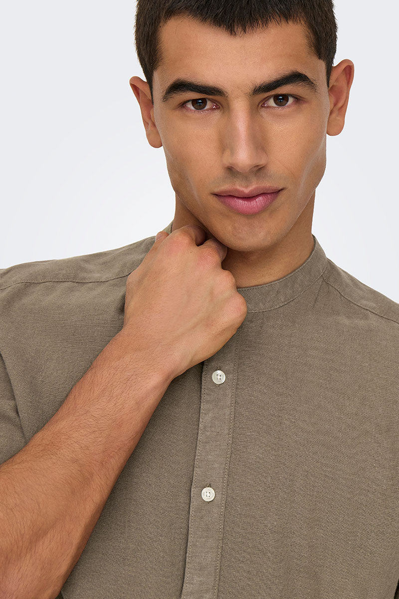 • Skjorten lukkes med knapper og har justerbare ærmer.