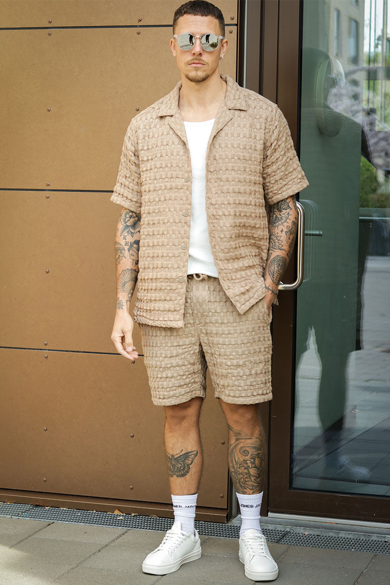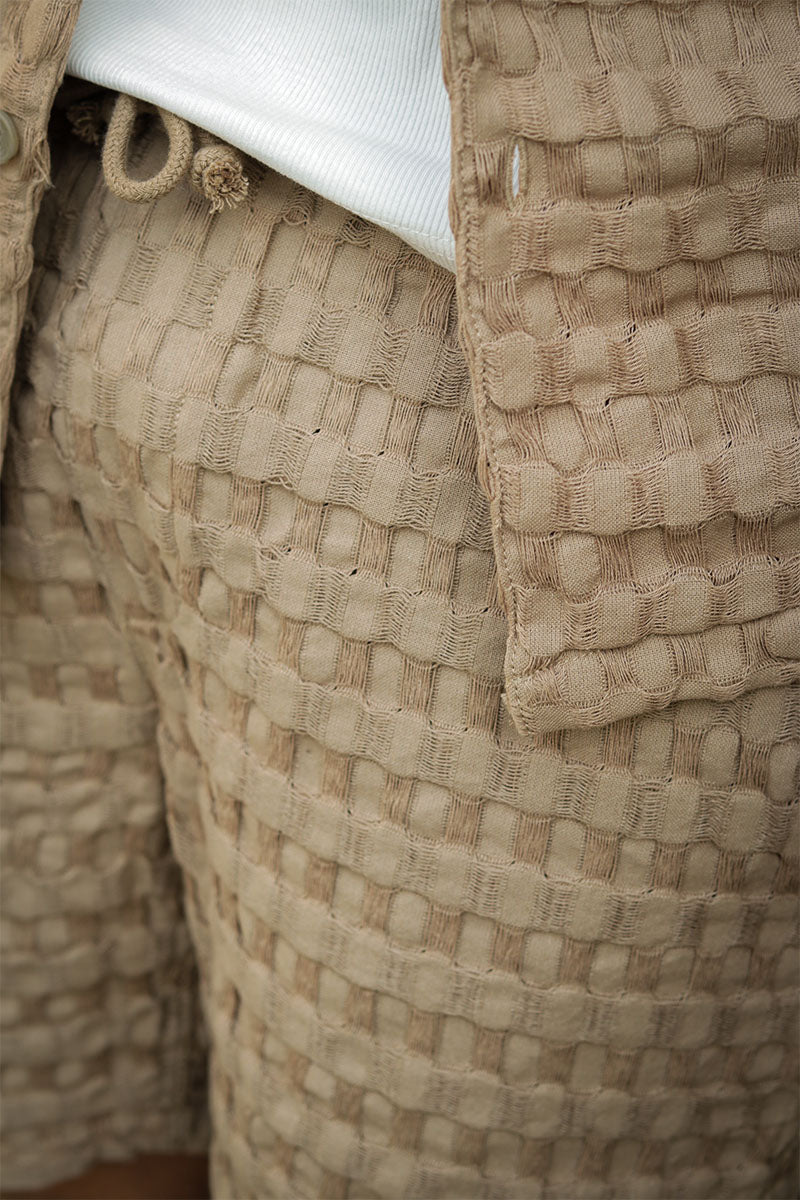 - Har to lommer foran, en lomme bagpå og snøre i livet