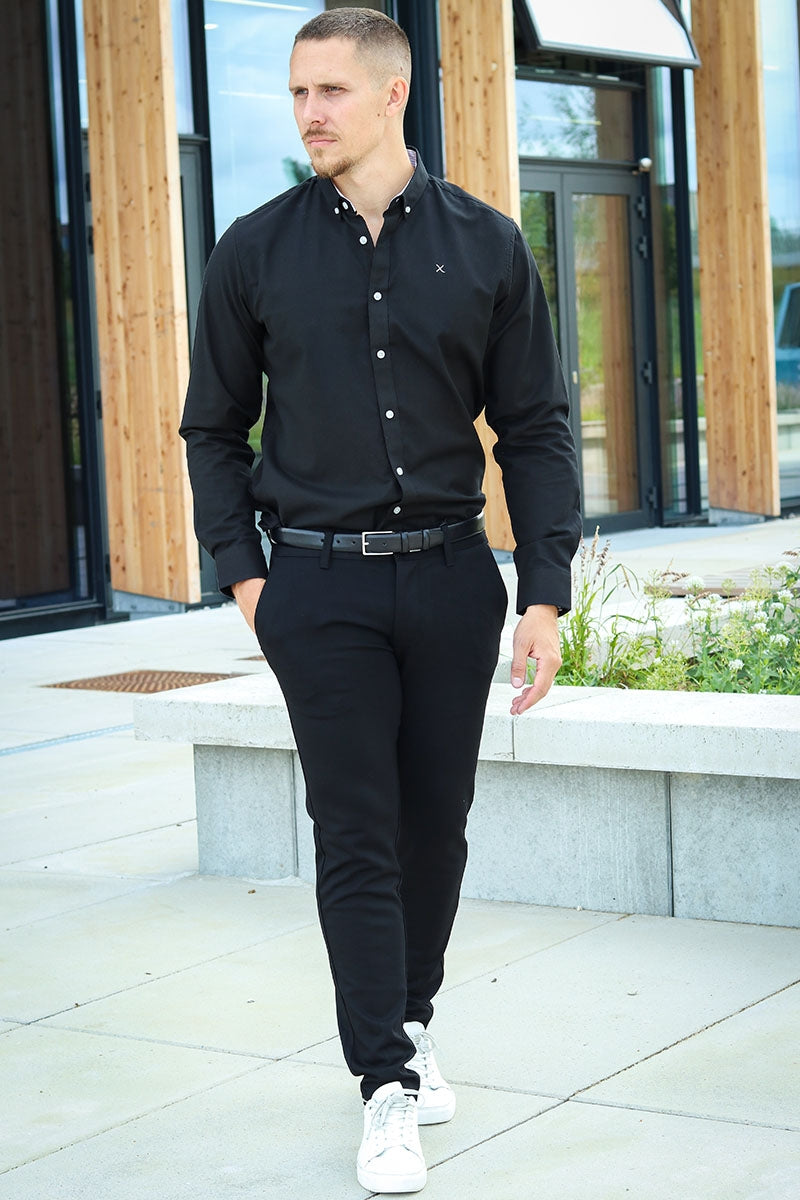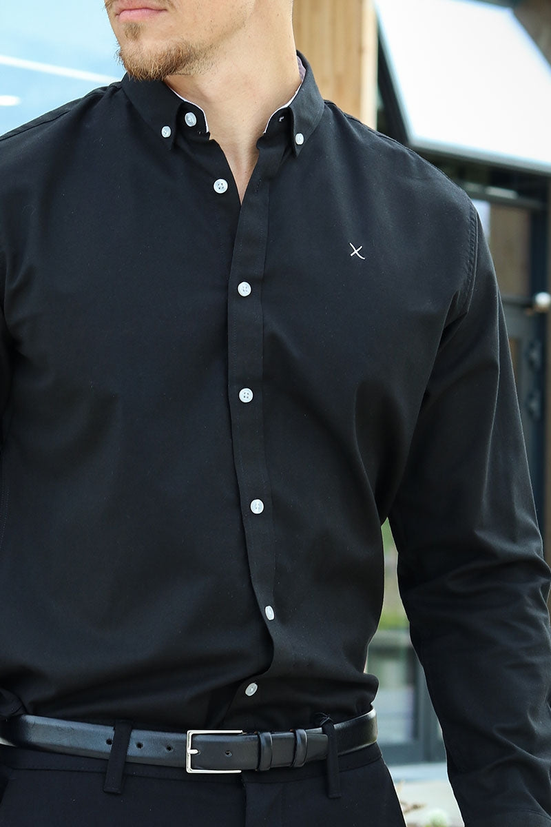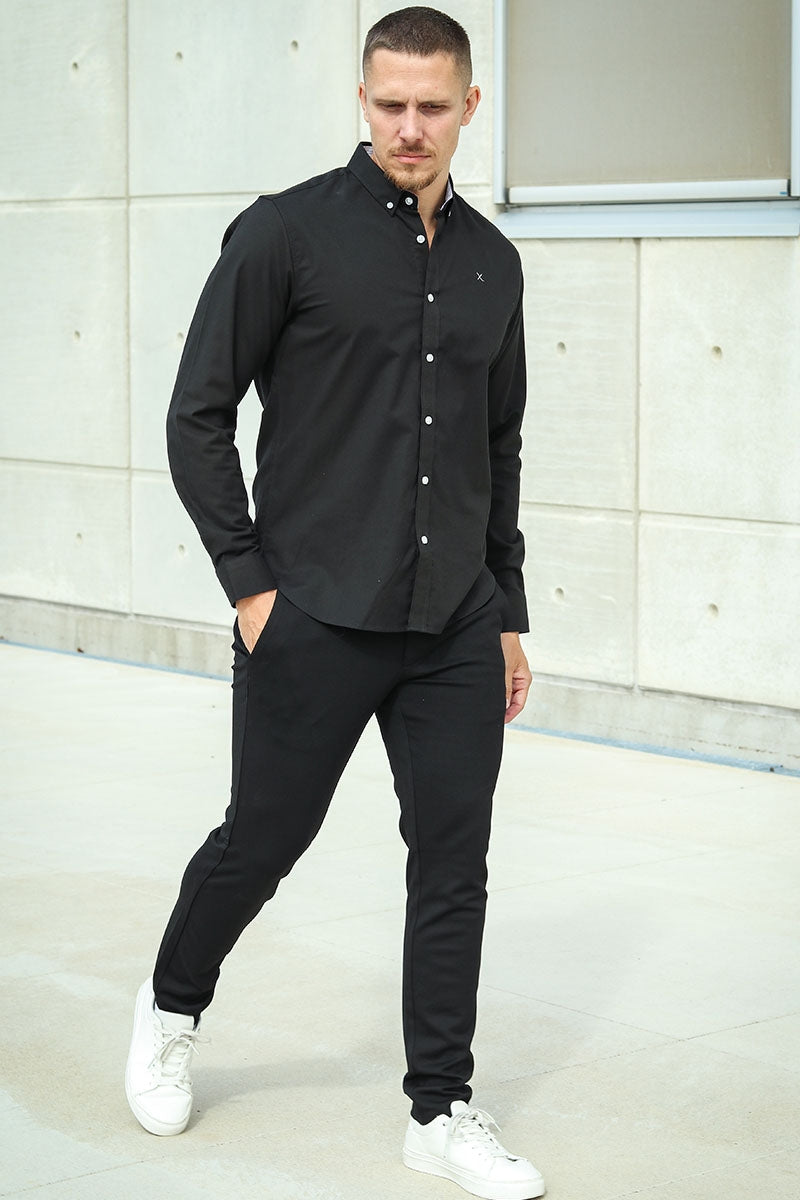 Oxford Stretch Plain L/S Black