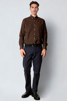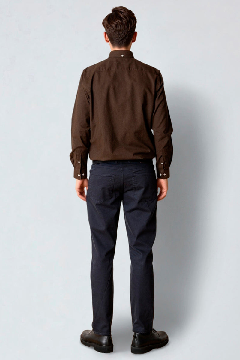 Oxford Stretch Plain L/S Dark Brown Melange