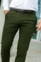 - Slim fit stretch bukser med slidslommer foran og bagpå.