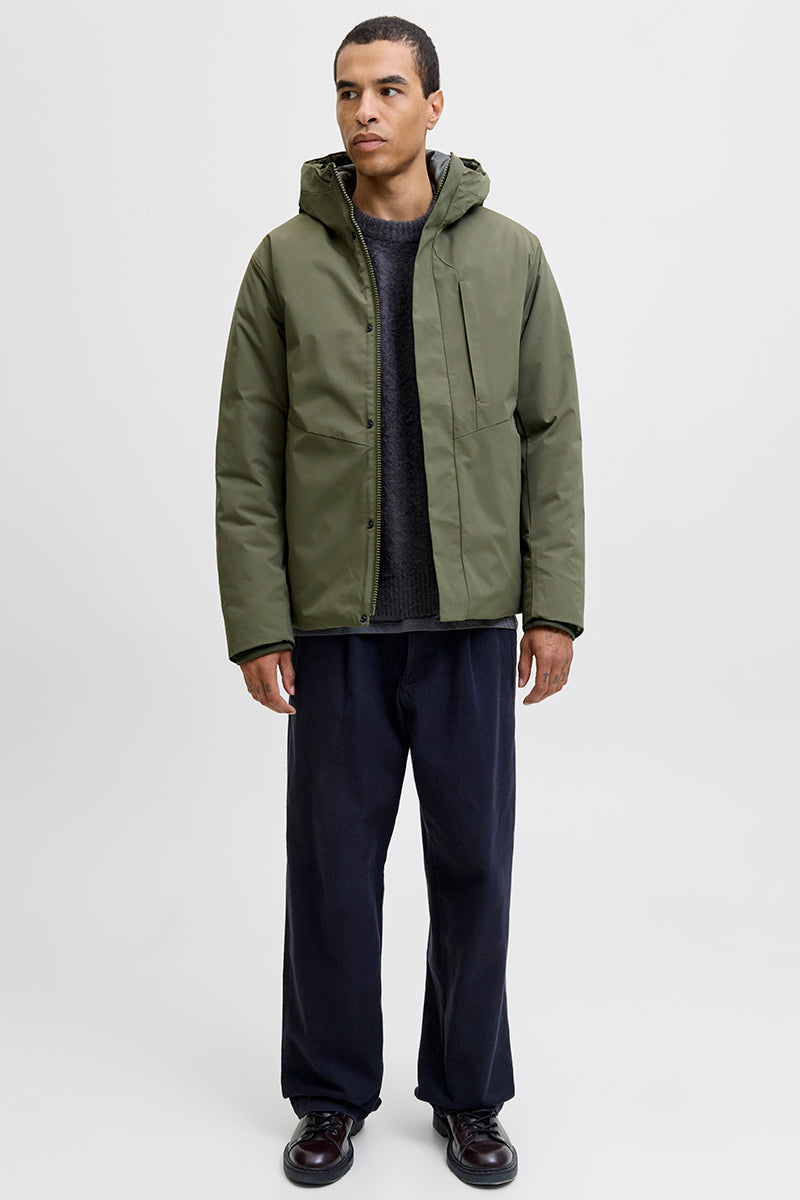 - Jakken har 2 skrå forlommer samt en brystlomme. Jakken er vind- og vandafvisende