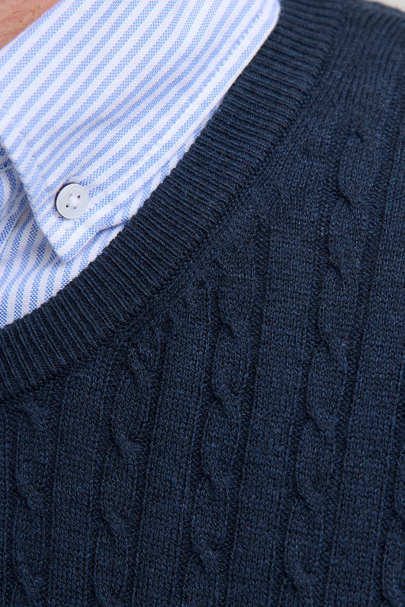 Emil Knit Cable Crew Neck Navy Blazer