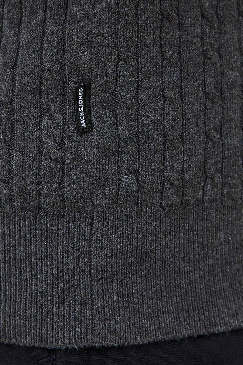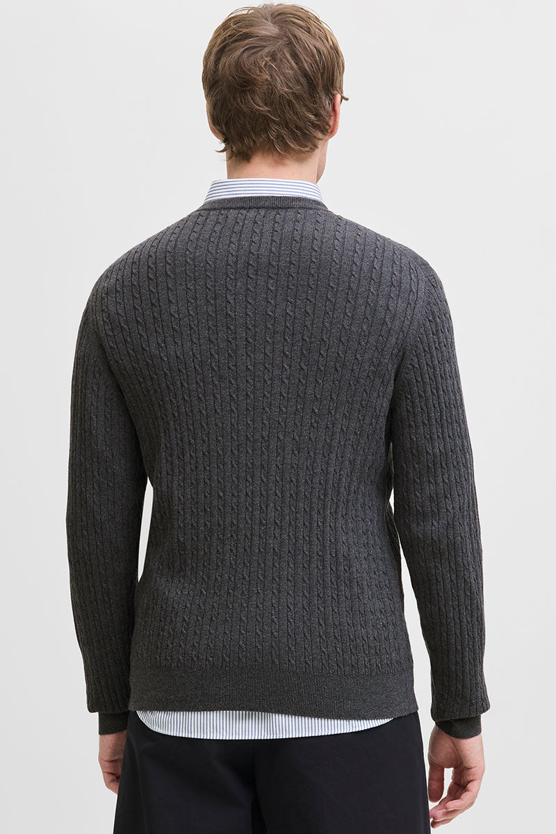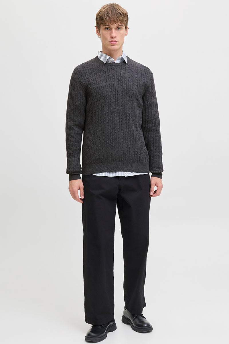Emil Knit Cable Crew Neck Dark Grey Melange
