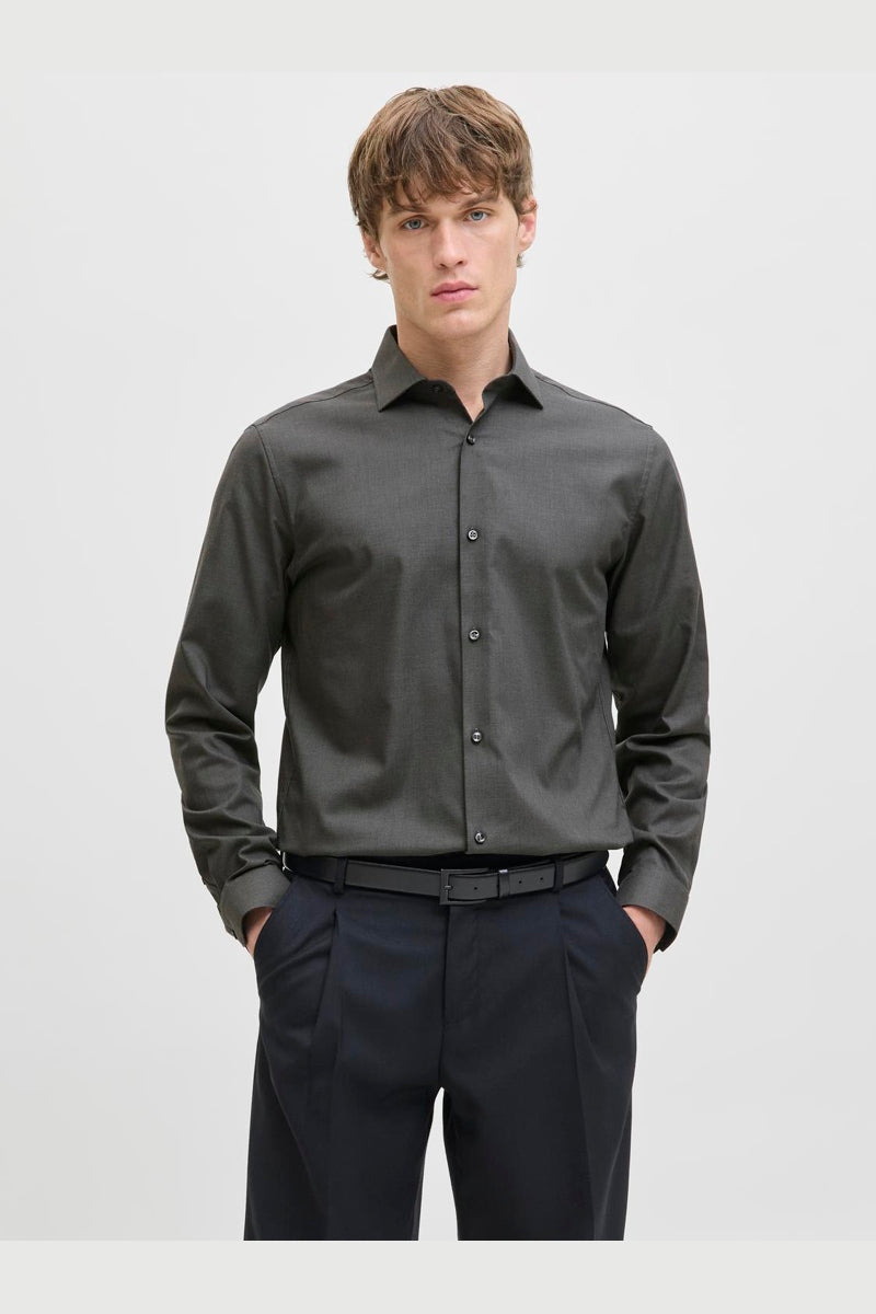 - Mørkegrå langærmet skjorte i slim fit