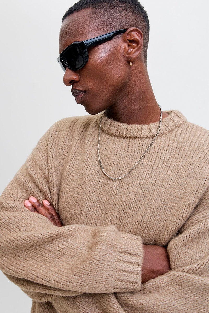 - Trøjen har crewneck, lange ærmer og en kraftig struktur. Derudover er der ribkant ved ærmerne og i livet.
