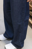 Disse wide fit jeans har en klassisk fem-lomme detalje, som altid er tidløs og enkel. De er designet med en midt-lav talje og en bred benåbning, hvilket giver en afslappet og behagelig pasform. Fremstillet primært af blødt, åndbart bomuld med en lille andel genanvendt bomuld, sikrer de komfort i dagligdagen og et naturligt udseende i blå denim.