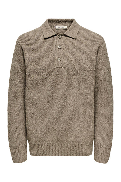 - Trøjen har en strikket krave og 3 knapper for oven. Derudover har den ribkant i livet og ved ærmerne