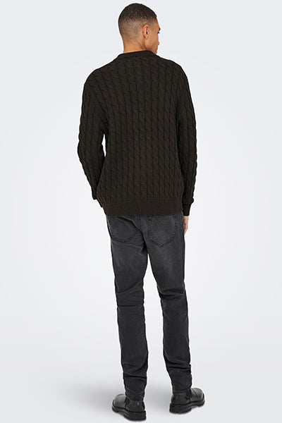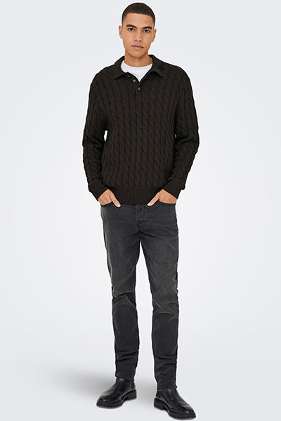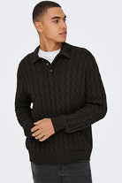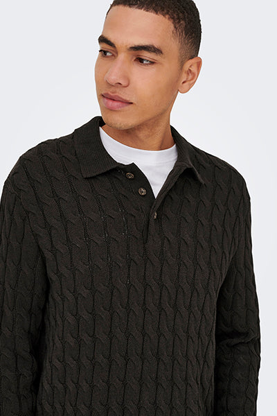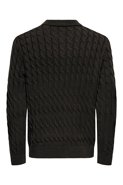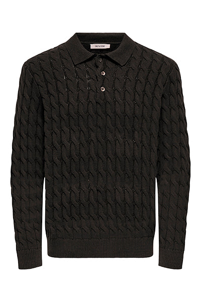- Trøjen har en strikket krave og 3 knapper for oven. Derudover har den ribkant i livet og ved ærmerne