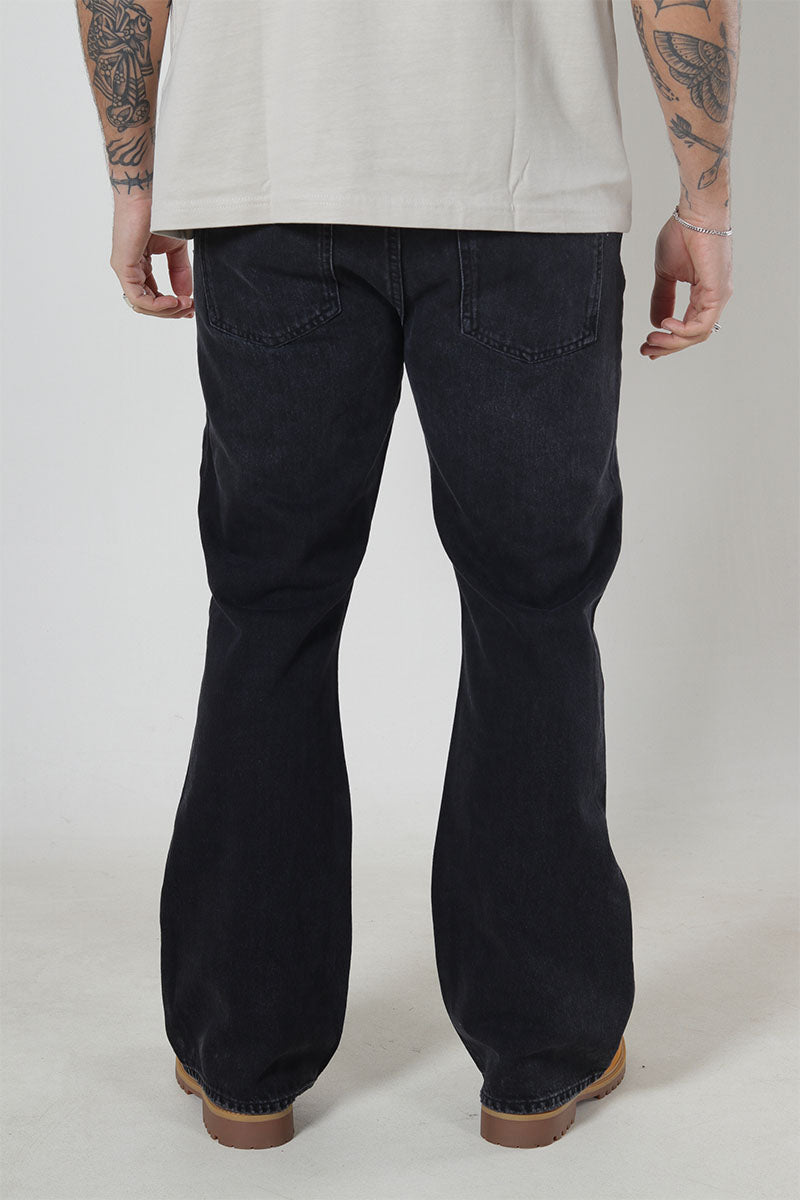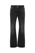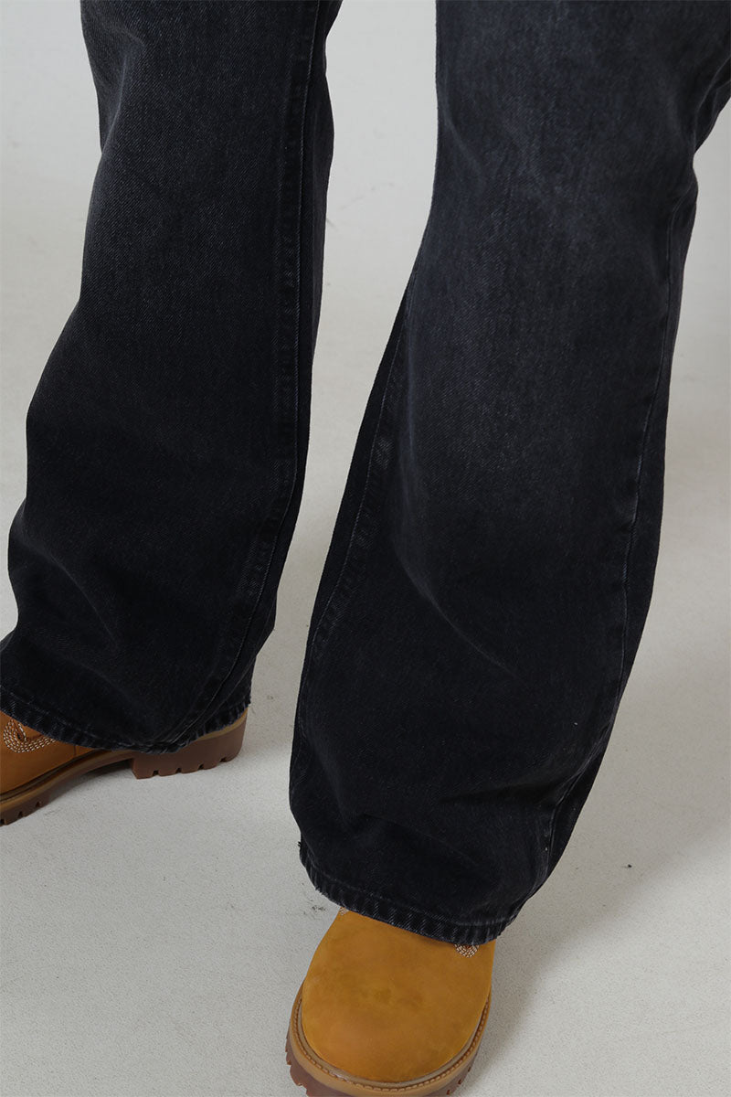 Disse bootcut-jeans i vaskede sorte nuancer er et alsidigt valg til hverdagens garderobe. Denimstoffet har en perfekt afbalanceret vægt, der kombinerer komfort og stil, og gør bukserne velegnede til de fleste lejligheder. Det midtgående taljeafsnit giver en behagelig pasform og sammen med de let udvidede ben sikres et klassisk look med moderne kant. Ekstra detaljer som mærkat, bæltestropper og nitter tilføjer karakter til designet.