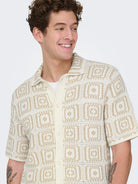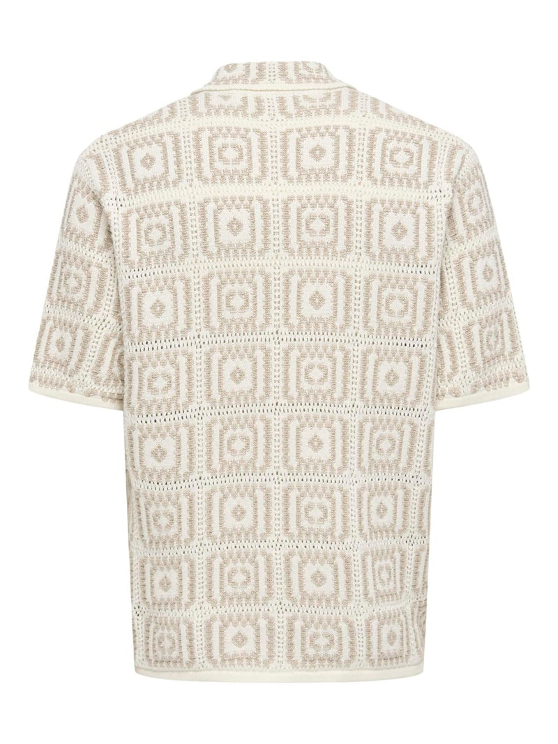 Denne relaxed fit skjorte er udført i blødt og åndbart bomuld, der sikrer høj komfort gennem hele foråret. Med sine korte ærmer og klassiske krave får du et tidløst udtryk, mens den gennemgående knaplukning giver et rent og gennemført look. Den lyse off-white nuance med et diskret ternet mønster tilføjer en frisk tekstur, der gør skjorten ideel til både hverdagens gøremål og afslappede sammenkomster.