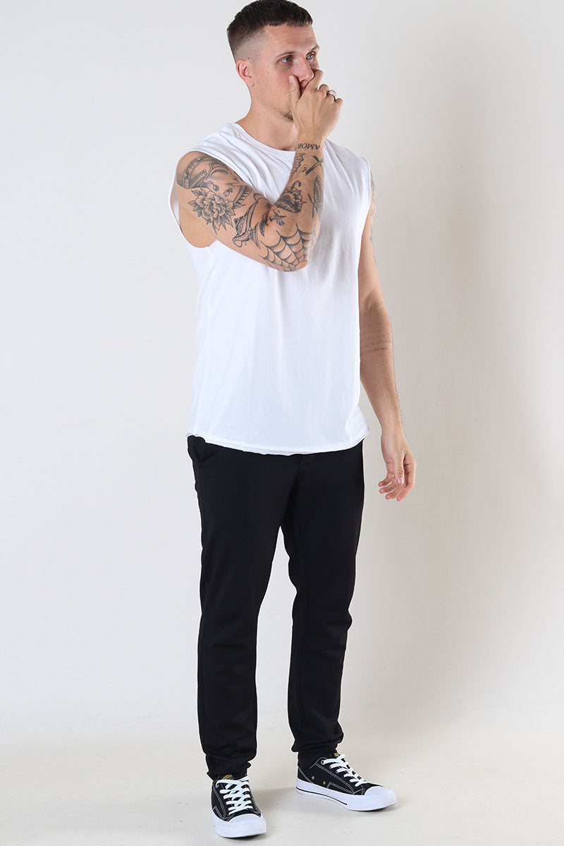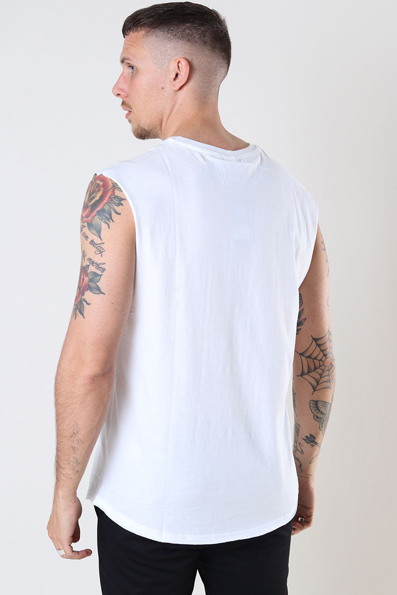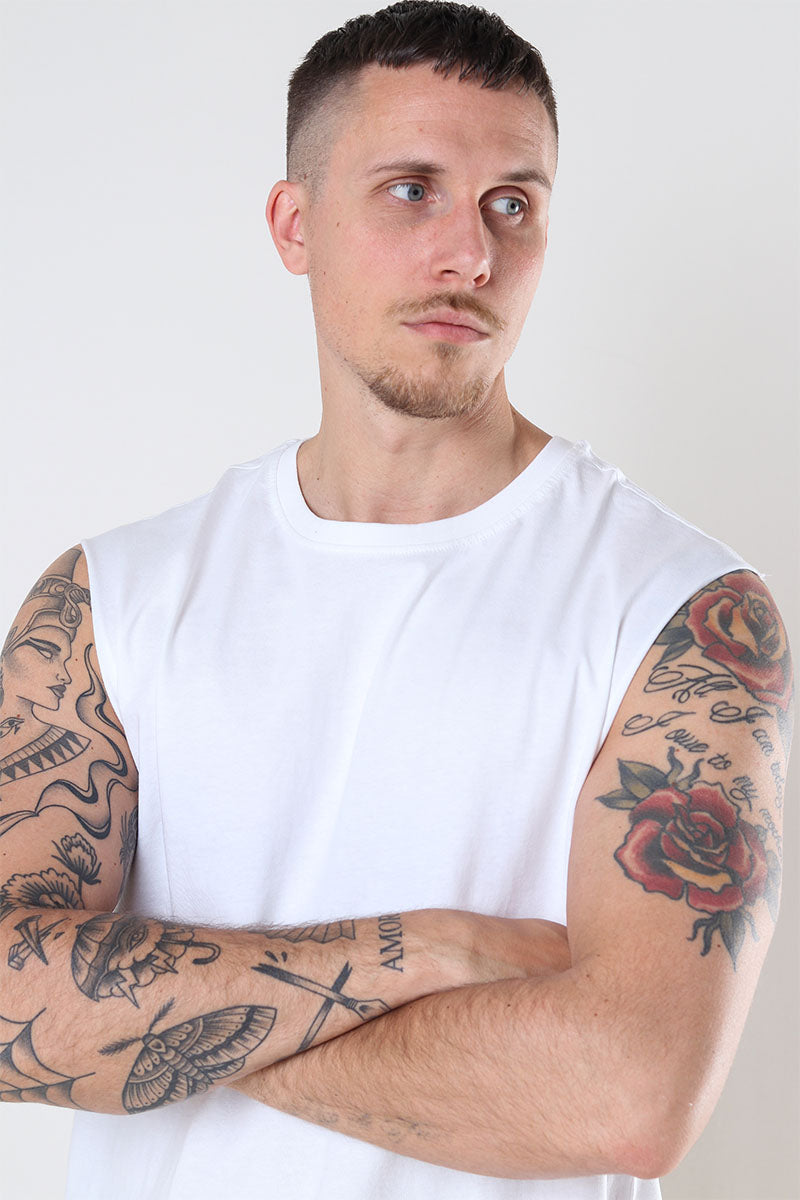 Urban Classics ærmeløs T-shirt. Kommer i hvid med ribkant i halsudskæringen. Trendy detalje med ripped udskæringer ved ærmer og i bunden af t-shirten. Kvalitet: 100% bomuld.