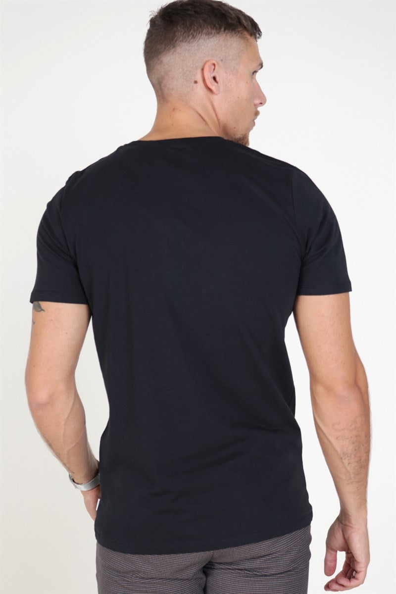 Jack & Jones O-neck t-shirt i et smart og basic design. Farven er sort og pasformen er slim fit. Jack & Jones logolabel er syet i venstre side af livet. Kvalitet: 100% bomuld