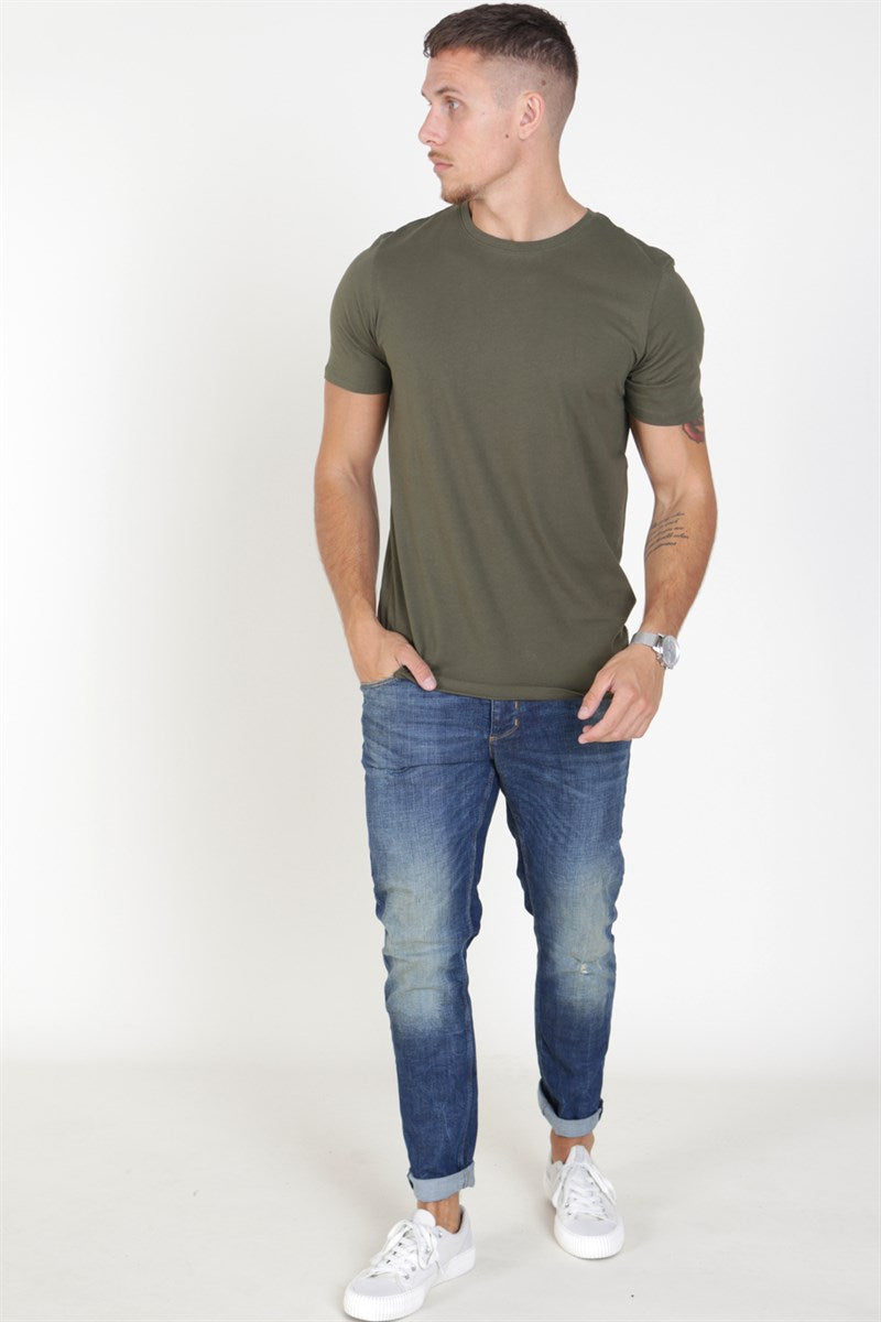 Jack & Jones O-neck t-shirt i et smart og basic design. Farven er olivengrøn og pasformen er slim fit. Jack & Jones logolabel er syet i venstre side af livet.Kvalitet:100% bomuld