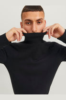Jack & Jones strik i sort i en let og fin kvalitet. Strikken har en rullekrave, med ribkant i kraven, ærmer og i livet. Lille logotag i livet. Regular fit. Kvalitet: 60% bomuld, 20% nylon, 20% viskose.