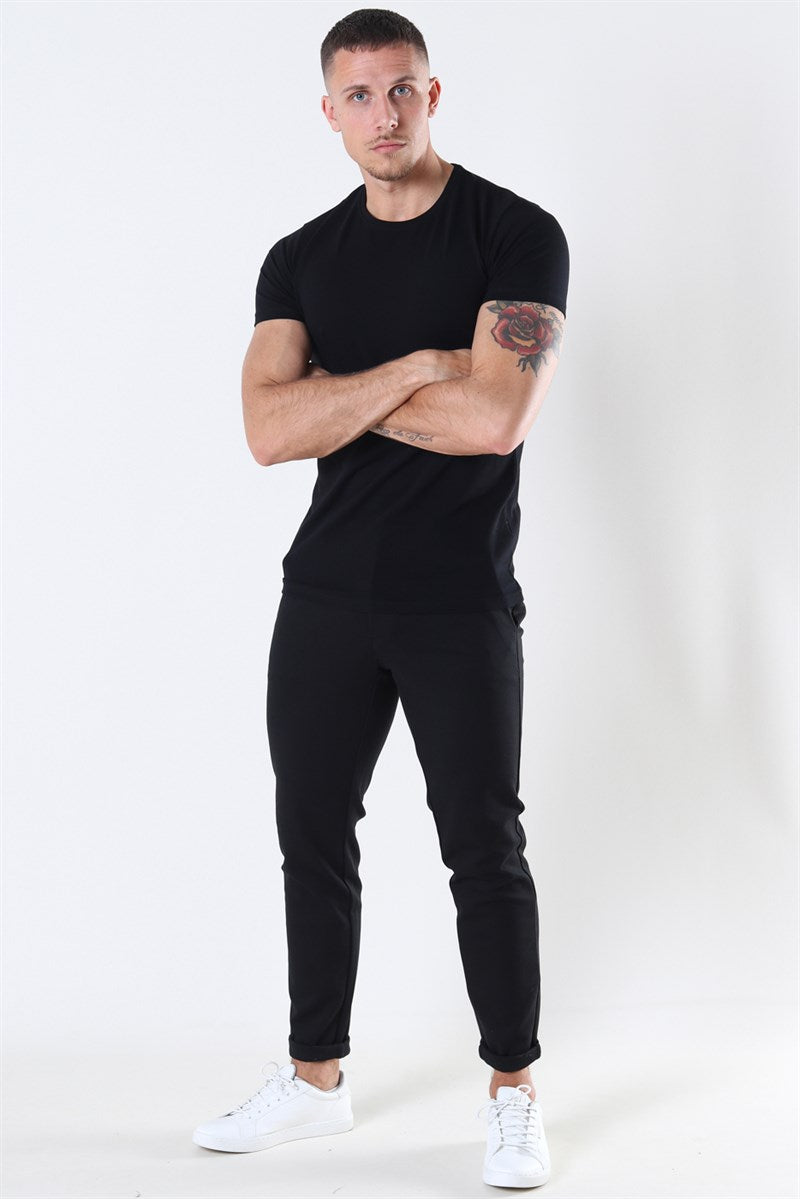 - Dejlig pasform: Denne Muscle fit t-shirt i farven Black har en fantastisk pasform, som er designet til at fremhæve musklerne. Den er lavet med 4-vejs stretch, hvilket giver en øget fleksibilitet og bevægelsesfrihed. T-shirten er derfor ideel til træning, da den ikke hæmmer bevægelse og samtidig fremhæver den muskulære fysik. Den kan dog også sagtens bruges til hverdagsbrug