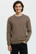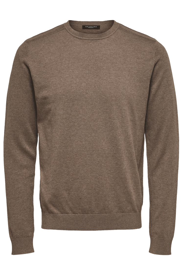 Denne pullover med rund hals er et tidløst og behageligt valg til din hverdagsgarderobe. Den har en regular fit pasform med lange ærmer og ribstrikkede manchetter, der sikrer en god pasform og komfort hele dagen. Farven Teak med melange-detaljer giver et afslappet og alsidigt look, som nemt kan styles til forskellige outfits. Pulloveren er strikket og fremstillet med fokus på bæredygtighed, da den indeholder minimum 50% økologisk bomuld, hvilket gør den til et mere miljøvenligt valg.