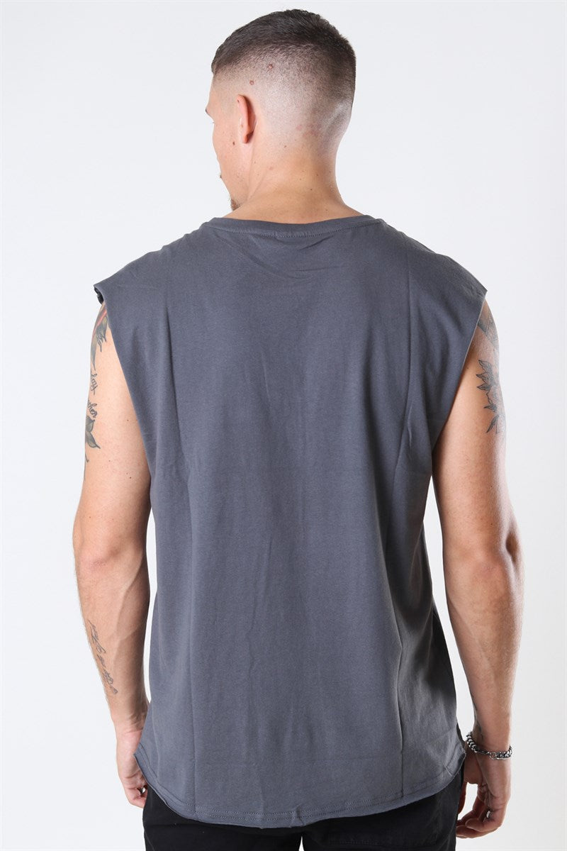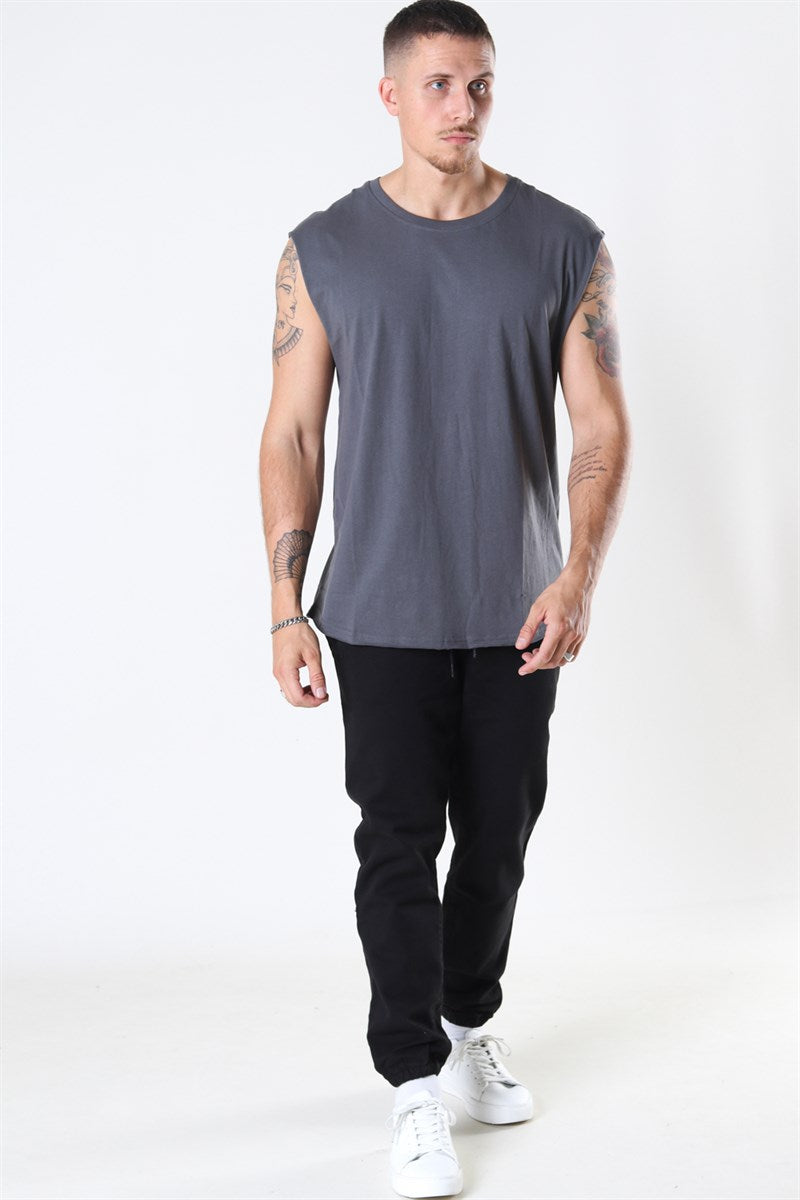 Urban Classics ærmeløs T-shirt i grå. T-shirten er med klassisk o-neck med ribkant. Ærmerne er med store ripped udskæringer, samt ripped kant i livet. Kvalitet: 100% bomuld.