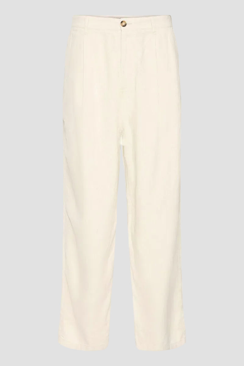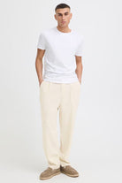 Disse tapered bukser kombinerer en let og behagelig følelse med et enkelt, stilrent design i en varm beige farve, kaldet Oatmeal. Den klassiske pasform med let tilsmalnende ben gør dem ideelle til både hverdag og mere formelle lejligheder. Stoffets sammensætning giver en naturlig komfort og åndbarhed, perfekt til voksne mænd, som ønsker både stil og funktionalitet.