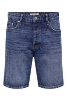 Disse denimshorts i mørkeblå er perfekte til varme sommerdage og afslappede anledninger som havefester eller ferie. De har en lige pasform, der sikrer komfort hele dagen, og er lavet af en blød og åndbar kvalitet, som består af 80% bomuld og 20% genanvendt bomuld. Shortsene har praktiske detaljer som bæltestropper og flere lommer, der gør dem både funktionelle og stilfulde.