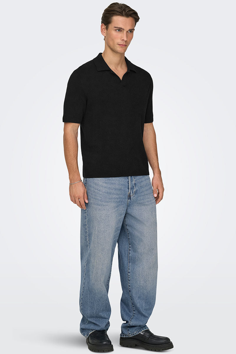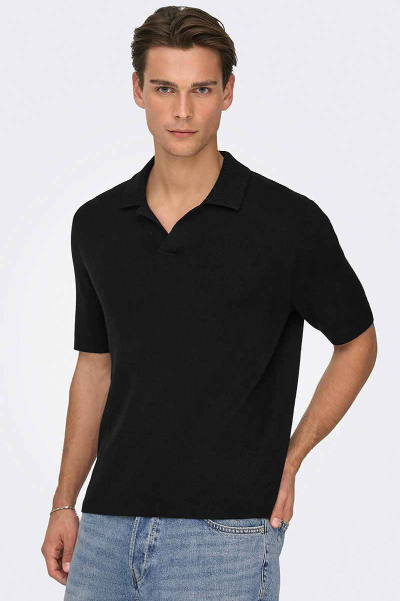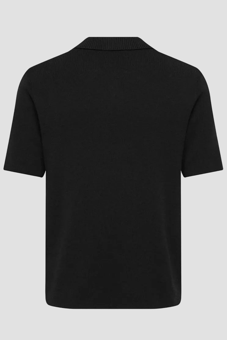 Denne strikkede polo har korte ærmer og en split hals, der giver et klassisk og afslappet udtryk. Med sit regular fit sidder den behageligt uden at være for tætsiddende. Materialeblandingen kombinerer bomuld, viscose og nylon, hvilket sikrer både blødhed og holdbarhed i stoffet.