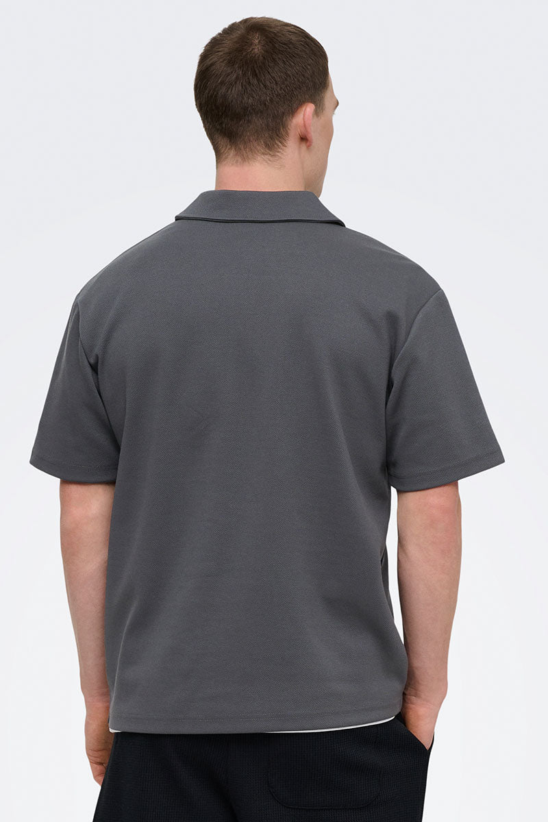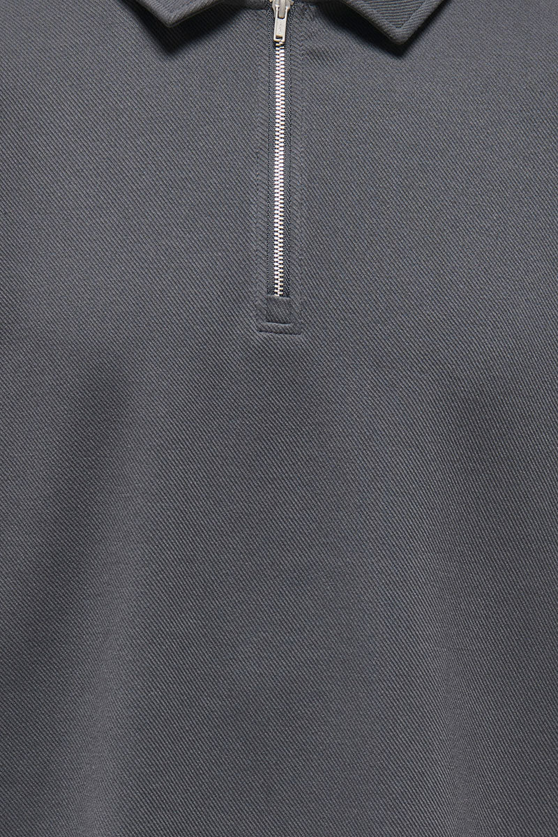 Denne polo med kort lynlås har et afslappet fit og er perfekt til efterårssæsonen. Den kommer i en grå farve med fine striber, der giver et stilfuldt, men samtidig afslappet look. Materialerne, en kombination af polyester, viscose og elastan, sikrer både komfort og bevægelsesfrihed. Poloens korte ærmer og klassiske krave gør den velegnet til både hverdagsbrug og mere afslappede begivenheder.