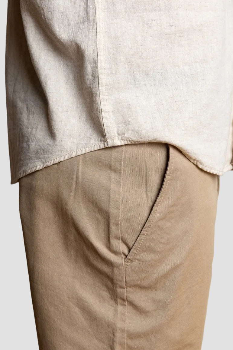 Disse twill shorts i en sandfarve giver et afslappet og behageligt look, perfekt til forårs- og sommerbrug. Fremstillet primært i bomuld med en smule elastan, sikrer de både åndbarhed og let stretch for optimal bevægelsesfrihed.