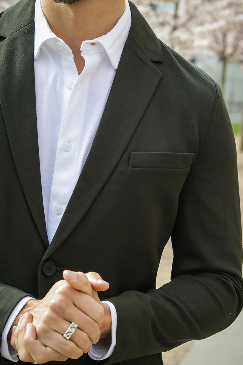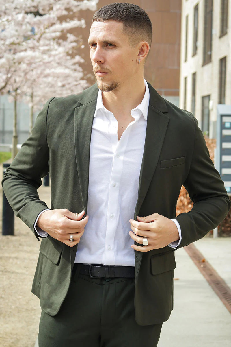 Sammen danner blazeren og bukserne et sæt, der ligner et klassisk jakkesæt, men føles som noget langt mere afslappet. Stretch-materialet gør det ideelt til arbejde, møder, events og hverdagsbrug, hvor komfort er lige så vigtig som stil. Det er et outfit, der ser skarpt ud – og føles endnu bedre at have på.